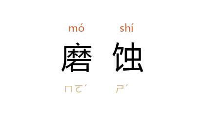 例如:「他的志气已经被环境磨蚀殆尽。」
