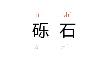 ⒈ 小石头。地质学上称由暴露在地表的岩石经风化作用而形成的小石子。常沉积在河床或山麓和山前地带。