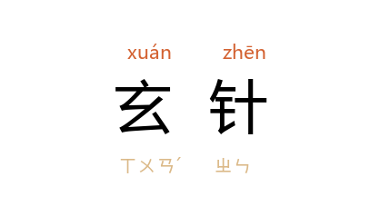 ⒈ 旧俗农历七月七日晚上,妇女对月穿针以乞巧,所用的针即称为「玄针」。