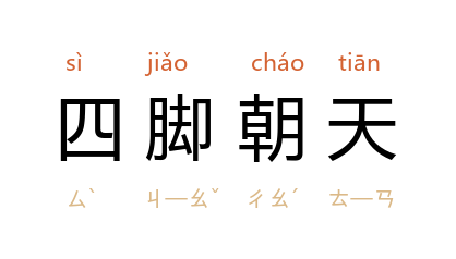 《官场现形记·第三〇回》:「说完这句,便四脚朝天,一声不言语了。」