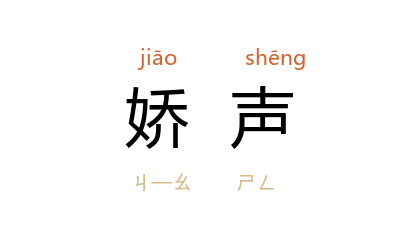 引宋 辛弃疾 《满江红》词:“乳燕引雏飞力弱,流鸎唤友娇声怯。”金 董解元 《西厢记诸宫调》卷一:“樱桃小口娇声颤,不防花下,有人肠断。”《花月痕》第六回:“小妓便齐声唱起采莲歌来,前后娇声婉转,响遏行云。”茅盾 《子夜》八:“﹝ 冯眉卿 ﹞袅着细腰跑到 冯云卿 跟前娇声说:‘爸爸!我要买几样东西。’”