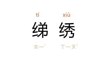 ⒈ 饰以彩绣的厚缯。