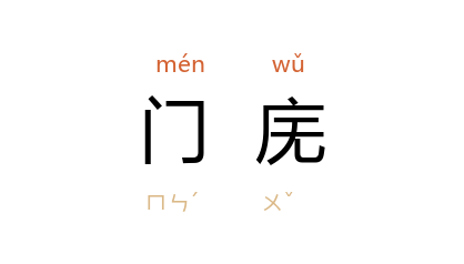 引宋 李纲 《又与李相公书》:“窃观自昔有为之相,遭时遇主共济艰难者,必先为之规模,譬犹大匠之作室,门廡堂奥皆已素定于胸次。”宋 刘克庄 《辛卯满散天基节即事》诗之二:“门廡无人殿未开,白头散吏久徘徊。”明 徐弘祖 《徐霞客游记·粤西游日记一》:“对面有东向一洞,与此相向,若门廡对列。”