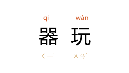 引《新唐书·玄宗纪》:“禁采珠玉及为刻鏤器玩、珠绳帖縚服者,废织锦坊。”宋 欧阳修 《日本刀歌》:“百工五种与之居,至今器玩皆精巧。”宋 文莹 《玉壶清话》卷三:“其子弟亦麤知书,留 中立 凡数日,出图史、器玩、琴尊、弧矢之具,虽皇州搢绅家止於是尔。”