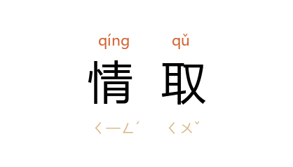 引金 董解元 《西厢记诸宫调》卷四:“我团着情取箇,从今后为伊瘦。”元 马致远 《任风子》第二折:“一旦修真,无甚功夫,撇下这砧刀什物,情取那经卷葫芦。”元 关汉卿 《青杏子·离情》套曲:“他有日不测相逢,话别离情取一场消瘦。”