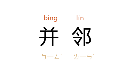 引宋 苏轼 《逸堂》诗:“新第谁来作并邻,旧官寧復忆星辰。”宋 林逋 《孤山寺》诗:“云峰水树 南朝 寺,祇隔丛篁作并隣。”