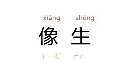 ⒈ 用纸、绢等材料,仿制成花果、人物等艺品。因为做得有如真物一般,所以称为「像 生」。