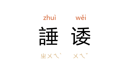 ⒈ 烦重貌。《列子·力命》:“眠娗、諈诿、勇敢、怯疑四人相与游于世,胥如志也。”张湛注:“四名皆假托寓言。諈诿,烦重貌。”一说义为嘱托。杨伯峻集释引《尔雅》郭璞注:“谓以事相属累以諈诿也。”