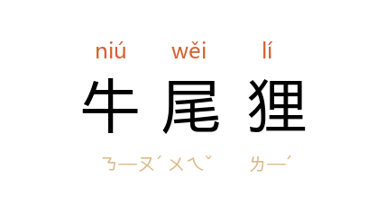 引唐 段成式 《酉阳杂俎续集·支动》:“洪州 有牛尾貍,肉甚美。”宋 苏轼 《送牛尾貍与徐使君》诗:“泥深厌听鸡头鶻,酒浅欣尝牛尾貍。”明 李时珍 《本草纲目·兽二·貍》:“貍有数种……南方有白面而尾似牛者,为牛尾貍,亦曰玉面貍,专上树木食百果,冬月极肥,人多糟为珍品,大能醒酒。”