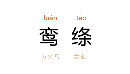 引清 李渔 《闲情偶寄·声容·衣衫》:“一曰束腰之带,俗呼鸞绦者是也。”《红楼梦》第三二回:“近日 宝玉 弄来的外传野史,多半才子佳人,都因小巧玩物上撮合,或有鸳鸯,或有凤凰,或玉环金珮,或鮫帕鸞绦,皆由小物而遂终身之愿。”