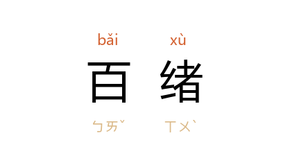 引《新唐书·王世充传》:“世充 每听朝决政,诲喻言语谆复百绪,以示勤篤,百司奏事者听受为疲。”《新唐书·苏颋传》:“玄宗 平内难,书詔填委,独 頲 在 太极 后閤,口所占授,功状百绪,轻重无所差。”杨玉如 《辛亥革命先著记》第九章:“夫 民国 新建,外交内政,百绪繁生。”