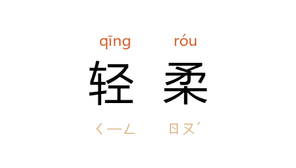 引晋 王嘉 《拾遗记·昆仑山》:“有瓜如桂,有柰冬生如碧色,以玉井水洗食之,骨轻柔能腾虚也。”宋 王雱 《眼儿媚》词:“杨柳丝丝弄轻柔,烟缕织成愁。”徐迟 《三峡记》:“雨湿花红路苔,风中飘来了轻柔的庆丰年的音乐。”