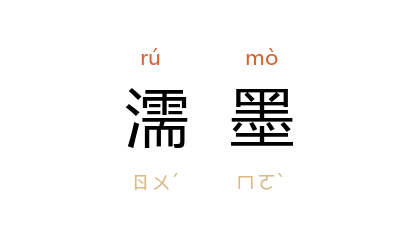 引清 阮元 《小沧浪笔谈》卷三:“有妓女 谢天香 者,以裙裾濡墨,大书‘穠芳’二字。”清 昭槤 《啸亭杂录·王太仓上书事》:“时举朝失色,无敢与笔砚者。公就宫门阶石上,裂生纸以唾濡墨。”清 紫真道人 《<笠翁传奇十种·奈何天>总评》:“濡墨写嗔,挥毫洩痛。”