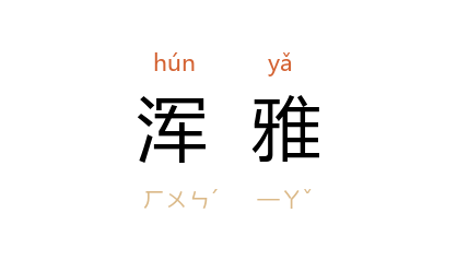 引明 沉德符 《野获编·内阁三·宰相对联》:“又今相国 福清公 邸中所粘桃符,则云:‘但将药裹供衰病,未有涓埃答圣朝’,尤为浑雅。”清 恽敬 《与黎楷屏书》:“莲水 出於 子才 之门,而其诗浑雅。”《儒林外史》第三六回:“虞博士 爱 庄徵君 的恬适, 庄徵君 爱 虞博士 的浑雅。”