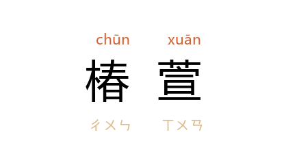 ⒈ 椿,香椿。萱,萱草。椿萱比喻父母。
