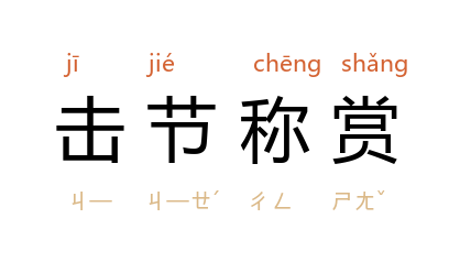 ⒈ 欣赏音乐时,因赞赏而随著乐曲的节奏打拍子。后多用于指对诗文创作或艺术表演的赞叹称赏。也作「击节叹赏」、「击节赞赏」。