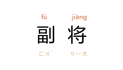 引《魏书·李元茂传》:“寻除振威将军、南征别将、 彭城镇 副将,民吏安之。”《隋书·百官志中》:“若有营作,则立将、副将、长史、司马、主簿,録事各一人。”清 黄宗羲 《明夷待访录·兵制三》:“有 明 武职之制……行伍有总兵、副将、参将。”