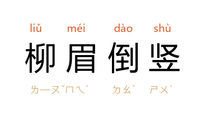 引《老残游记·第一六回》:「魏氏听了,抬起头来,柳眉倒竖,杏眼圆睁。」《孽海花·第一〇回》:「两人抬头一看,却就是那非常标致的女洋人夏雅丽姑娘,柳眉倒竖,凤眼圆睁。」