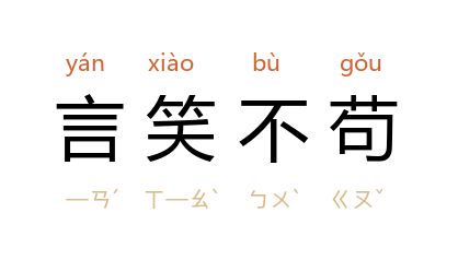 引《二刻拍案惊奇》卷二:“妙观 亦以师道自尊,粧模做样,儘自矜持,言笑不苟。”中国近代史资料丛刊《辛亥革命·滦州革命先烈事略·施从云》:“幼习 阳明 学説,言笑不苟。”梁启超 《变法通议·论幼学》:“又闻 美国 学童,跬步必肃,言笑不苟。”