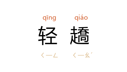 引《文选·张衡<西京赋>》:“非 都卢 之轻趫,孰能超而究升?”李善 注:“《太康地志》曰:‘ 都卢国,其人善缘高。’《説文》曰:‘趫,善缘木之士也。’”唐 张鷟 《朝野佥载》卷六:“柴绍 之弟某,有材力,轻趫迅捷,踊身而上,挺然若飞,十餘步乃止。”章炳麟 《訄书·序种姓上》:“达科佗 妇人,或名白貂,或名鼱鼩足,或名鼬鼠,箸其白晳轻趫。”