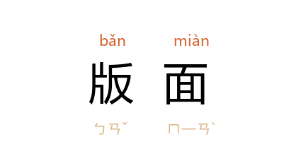 ⒈ 书报杂志上每一页的整面称为「版面」。