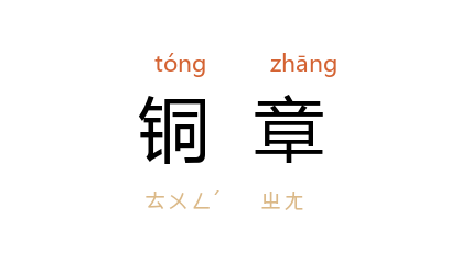引汉 应劭 《汉官仪》:“千石至三百石铜印。六百石铜章墨綬。”唐 岑参 《送宇文舍人出宰元城》诗:“县花迎墨綬,关柳拂铜章。”明 宋濂 《处州季君墓铭》:“手麾义旌,从者如水,左捕右攘,朱衣铜章。”