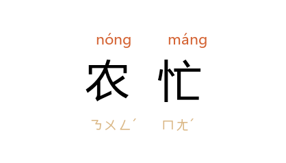 引《六部成语·刑部·农忙》:“州县官於耕种收穫之际,例应停讼,称之农忙。”董必武 《绍新孙两岁生日,时在广州》诗:“父母在 晋县,农忙事田亩。”
