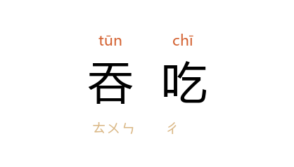 例如:「他不择手段的想吞吃了这笔钱财。」