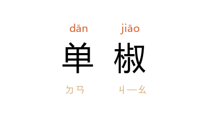 引北魏 郦道元 《水经注·济水二》:“﹝ 华不注山 ﹞单椒秀泽,不连丘陵以自高。”清 姚鼐 《偕一青仲郛应宿登城北小山至夜作》诗:“餘照在单椒,暝色生林下。”清 赵翼 《游雪崖洞甲秀楼诸胜》诗:“独思单椒秀泽满天下,何限玲瓏洞壑仙灵守。”