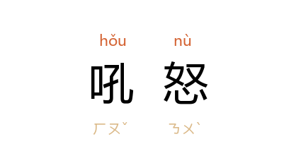 引唐·李白〈远别离〉诗:「皇穹窃恐不照余之忠诚,雷凭凭兮欲吼怒。」《聊斋志异·卷三·庚娘》:「王吼怒,捽妇出。」