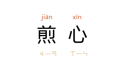 引南朝梁·简文帝〈倡楼怨节〉诗:「片光片影皆丽,一声一啭煎心。」唐·陈叔达〈自君之出矣〉诗:「思君如明烛,煎心且衔泪。」