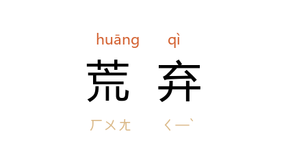 引《书·蔡仲之命》:“汝往哉,无荒弃朕命!”汉 马融 《广成颂》:“陛下戒惧灾异,躬自菲薄,荒弃禁苑,废弛乐悬。”宋 司马光 《畦蔬》诗:“隙土惜荒弃,翦治成春畦。”范文澜 《中国近代史》第八章第一节:“元 明 以来南北主要水旱大交通线从此荒弃,对两岸居民的生计是严重的打击。”