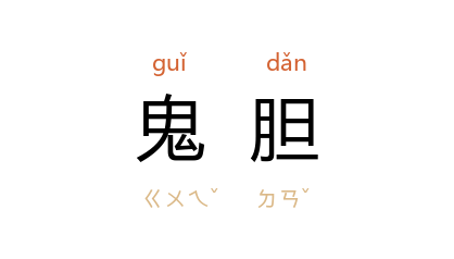 ⒈ 鬼的胆量。破鬼胆,犹言惊鬼神。