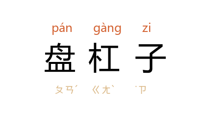 引清 潘荣陛 《帝京岁时纪胜·上元》:“至百戏之雅驯者,莫如南十番。其餘装演大头和尚,扮稻秧歌,九曲黄花灯,打十不閒,盘槓子,跑竹马。”《儿女英雄传》第二八回:“新郎盘槓子似的盘了半日,纔站起来。”