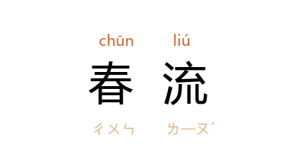 引南朝 宋 谢灵运 《山居赋》:“毖温泉於春流,驰寒波而秋徂。”唐 杜甫 《春日江村》诗之一:“农务村村急,春流岸岸深。”宋 陆游 《晓发金牛》诗:“沮水 春流緑, 嶓山 晓色苍。”