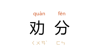 引《左传·僖公二十一年》:“修城郭,贬食,省用,务穡,劝分,此其务也。”杜预 注:“劝分,有无相济。”杨伯峻 注:“劝分者,劝其有储积者分施之也。”《国语·晋语》:“懋穡劝分,省用足财。”韦昭 注:“劝有分无。”元 揭傒斯 《逸士陈君墓志铭》:“凶年飢岁,发廩賑贷,不待劝分。”清 黄宗羲 《赵州李公救菑记》:“从来救菑之法……曰发仓廪,曰劝分,如此而已。”