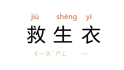 ⒈ 飞机或轮船上,为防意外危险而准备的救生衣著。一般为吹气式的背心,用泡沫塑胶、软木等轻质材料制成。穿在身上具有足够的浮力,支撑落水者头部露出水面。
