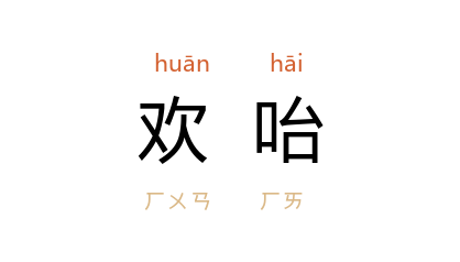 引唐 韩愈 《感春》诗:“前随 杜尹 拜表回,笑言溢口何欢咍。”宋 王安石 《和王微之登高斋》之二:“能招过客饮文字,山水又足供欢咍。”宋 沉遘 《和江邻几送文丞相还游普安院》:“清赏何以娱,一枰聊为开;岂徒事争决,要相资欢咍。”