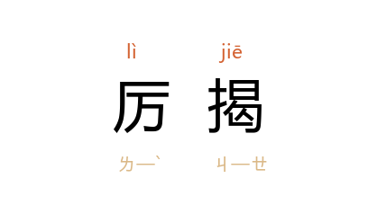 ⒈ 涉水。连衣涉水叫厉,提起衣服涉水叫揭。语出《诗·邶风·匏有苦叶》:“深则厉,浅则揭。”毛传:“以衣涉水为厉,谓由带以上也。揭,褰衣也。”