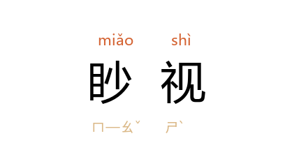 《水浒传》第六九回:“董平 那廝无礼,好生眇视大寨。”