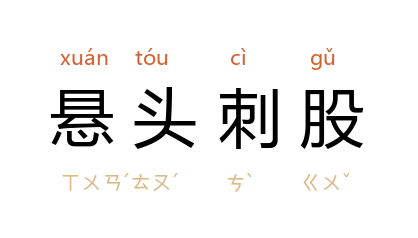 ⒈ 悬头,将头发用绳子悬在屋梁上。参见「悬头」条。刺股,用锥刺腿。参见「刺股」条。悬头刺股比喻发愤学习。明·汪廷讷也作「悬头刺骨」、「悬梁刺股」、「悬梁刺骨」、「刺股悬梁」、「刺骨悬梁」。