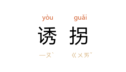 引鲁迅 《南腔北调集·上海的少女》:“然而我们在日报上,确也常常看见诱拐女孩,甚而至于凌辱少女的新闻。”端木蕻良 《被撞破了的脸孔》:“‘没钱那就不行了,没钱你诱拐,喝,至少也得五年!’那张脸孔大大的不以为然了。”