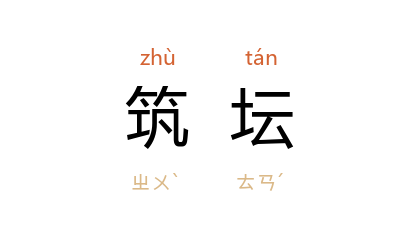引宋·陆游〈感皇恩·小阁倚秋空〉词:「黄阁紫枢,筑坛开府,莫怕功名欠人做。」《三国演义·第四九回》:「来南屏山相度地势,令军士取东南方赤土筑坛。」