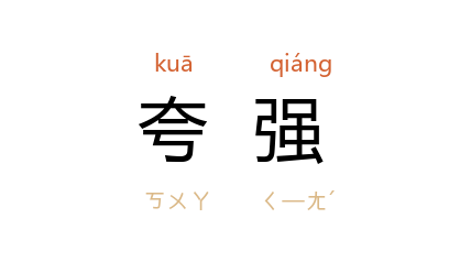 引元 无名氏 《锁魔镜》第一折:“不是我夸强卖弄。一箭箭把红心来中。”明 李开先 《锦衣香》曲:“今番省悟,做箇英豪,不是我夸强卖老。”《初刻拍案惊奇》卷十六:“那时黄榜动,选场开。五人进过了三场,人人得意,个个夸强。”