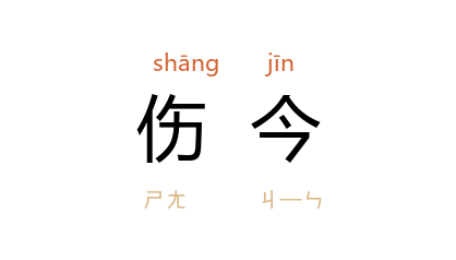 引宋 辛弃疾 《贺新郎·用前韵再赋》词:“叹人生、不如意事,十常八九。右手淋浪才有用,闲却持螯左手。漫赢得、伤今感旧。”明 李时勉 《<犁眉公集>序》:“伤今悼古,牢笼百态,可以超迈当世者,则於《覆瓿集》见之。”鲁迅 《准风月谈·双十怀古》:“附记:这一篇没有能够刊出,大约是被抽去了的,盖双十盛典,‘伤今’固难,‘怀古’也不易了。”