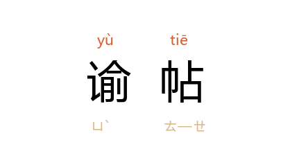 引《儒林外史》第四九回:“又发了一个諭帖,諭门下总管,叫茶厨伺候,酒席要体面些。”《儿女英雄传》第三回:“安公子 説:‘便是许久没接着老人家的諭帖了。’”《官场现形记》第五回:“昨天已贴了諭帖,不准官亲、师爷私自弄钱。”
