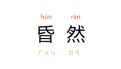 引《列子·黄帝》:“昏然五情爽惑。”唐 薛用弱 《集异记·蔡少霞》:“神思昏然,不觉成寐。”《辛亥革命前十年间时论选集·论排外当有预备》:“以故国家之屈辱失败,纷至沓来,而举国昏然,方且以研究外交者为荒傖而狂怪。”