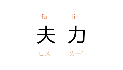 引《宋书·孝义传·王彭》:“乡里并哀之,乃各出夫力助作塼。”宋 叶适 《宋武翼郎新制造御前军器所监造官邵君墓志铭》:“州县将有土木之事,或佣借夫力,上司抛买,提刑司所谓五分头子,皆於此乎取。”脚夫。 《花城》1981年第1期:“搬到这天桥边来,因为这儿只伶仃一间,那伕力恐照不住生活,便不跟到这儿来。”