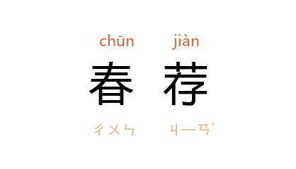 引《礼记·王制》:“庶人春荐韭,夏荐麦,秋荐黍,冬荐稻。”唐 王维 《敕赐百官樱桃》诗:“总是寝园春荐后,非关御苑鸟衔残。”元 张昱 《辇下曲》:“寝庙岁行春荐礼,有加鉶豆杂鲜腒。”