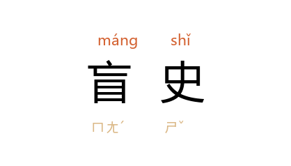 左 为 春秋 鲁 史官,曾为 鲁国 史书《春秋》作传,世称《左氏传》。后因以“盲史”作为 左丘明 的代称。 清 杨凤苞 《记庄廷鑨史案本末》:“庄廷鑨 字 子襄 ……少患疯疾,延良医治之,谓疾愈,当损目,试之果然。 廷鑨 遂妄以盲史自居。”